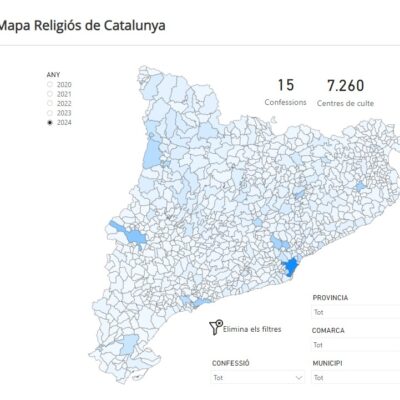 El Mapa Religiós de Catalunya és un projecte impulsat i finançat per la Direcció General d’Afers Religiosos de la Generalitat de Catalunya, que té per objectiu identificar i conèixer amb profunditat les comunitats religioses i els llocs de culte de totes les confessions presents a Catalunya.