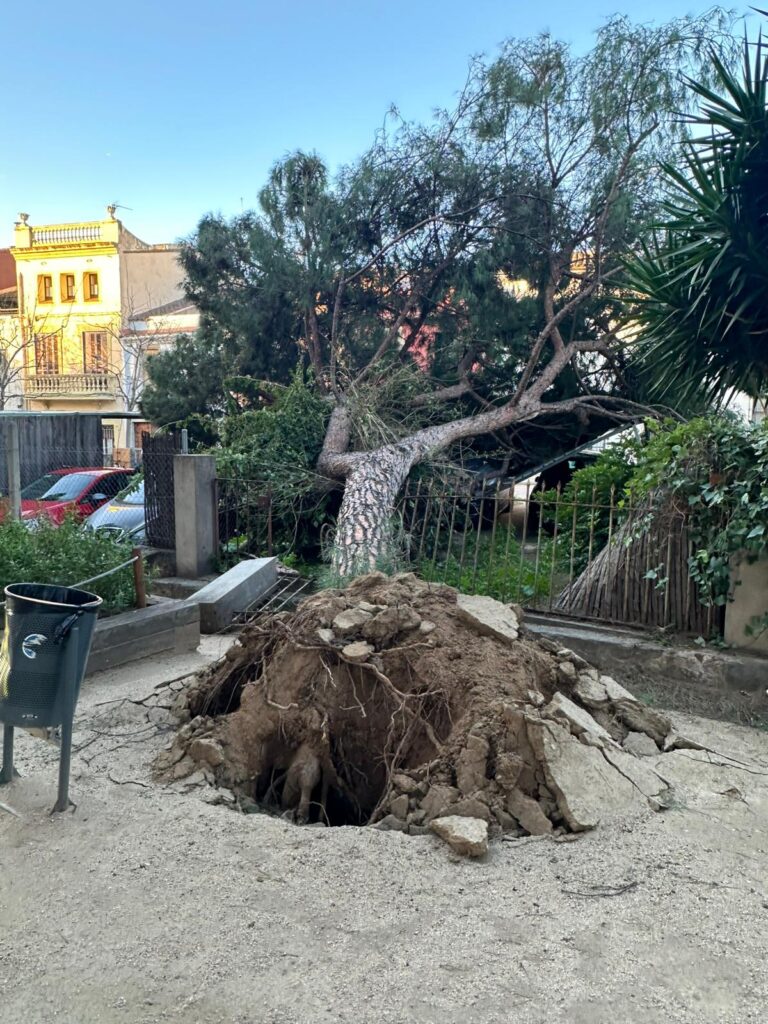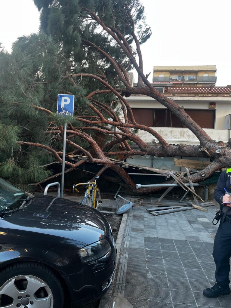 Ratxes de fins a 87 km/h a Vilassar de Mar amb caiguda d’arbres i altres incidències, però sense danys personals