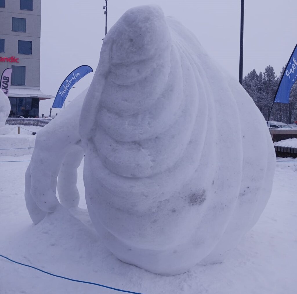 I els van acceptar. Doncs cap a Suècia. En Joan i la Valentina van tenir tres dies i mig per treballar, amb la neu, la seva obra. A l’hora de decidir què representaven, un català i una siciliana ho van tenir molt clar. El Mediterrani els uneix. Els dos tenien un cargol de mà a casa. Van decidir fer un cargol de mar del que surt una mà.